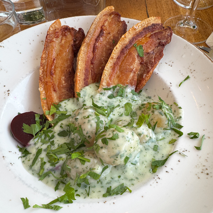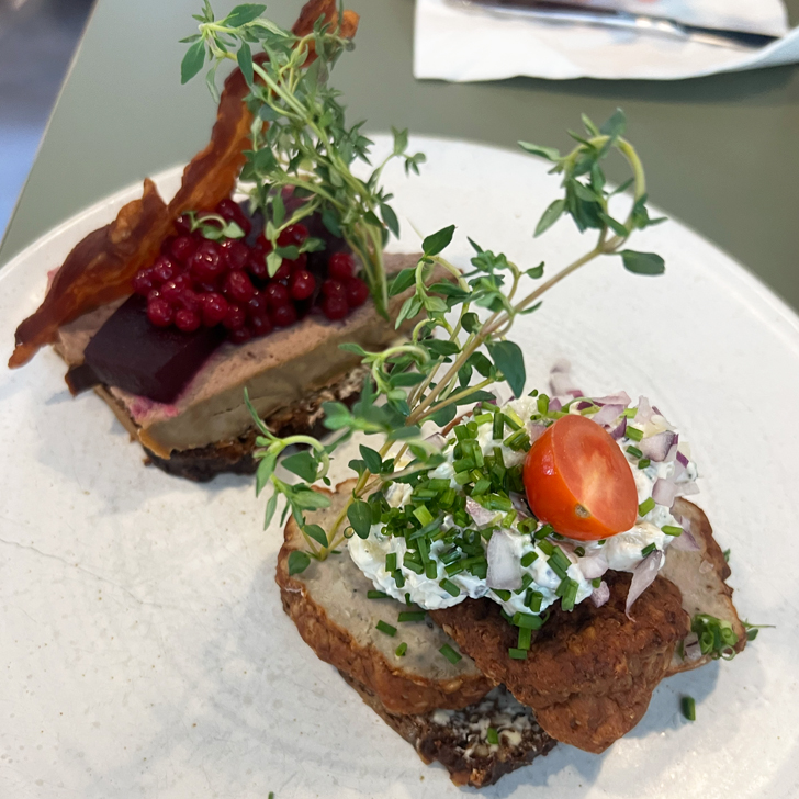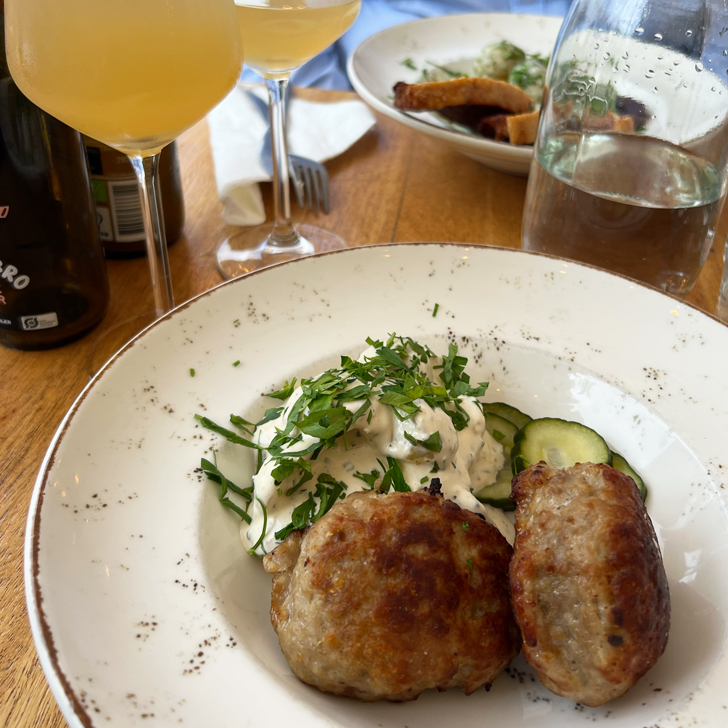 We tried several of them: Salmon and horseradish, roasted beef with pickles, fried onions and horseradish, meatball with potato salad (don’t mock it until you try it).